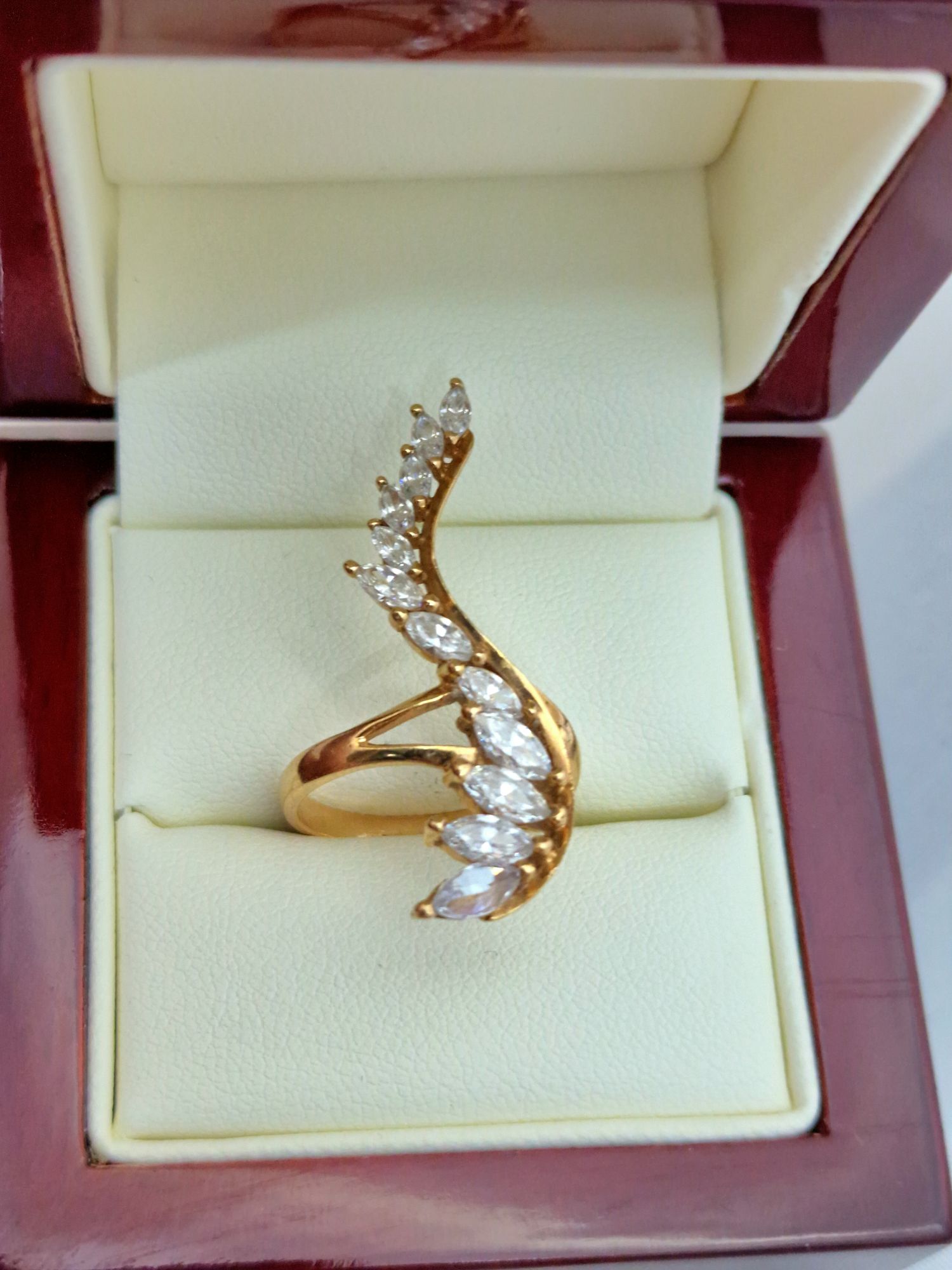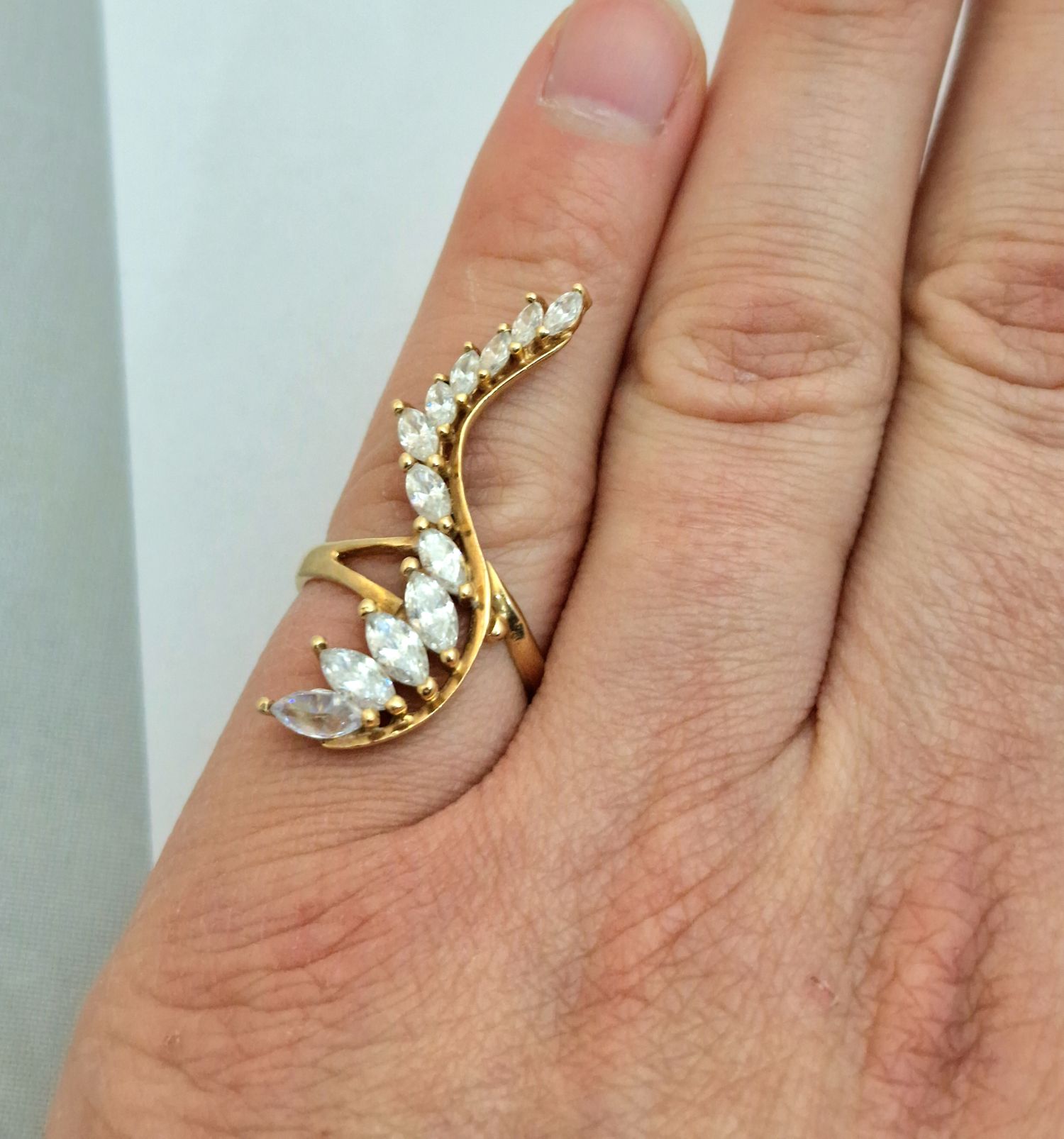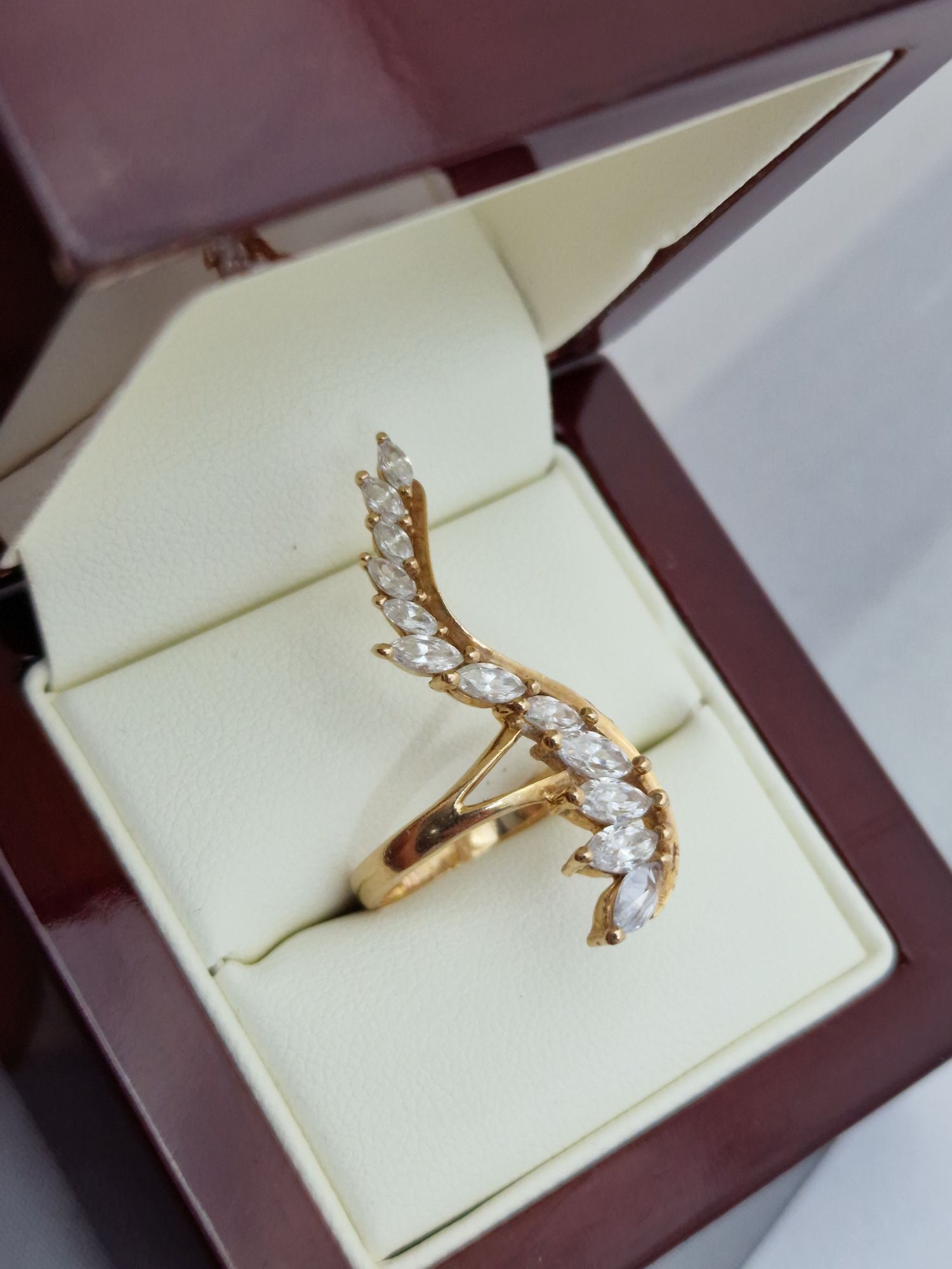 Na sprzedaż bardzo ciekawy złoty pierścionek wysadzany dwunastoma kryształkami górskimi