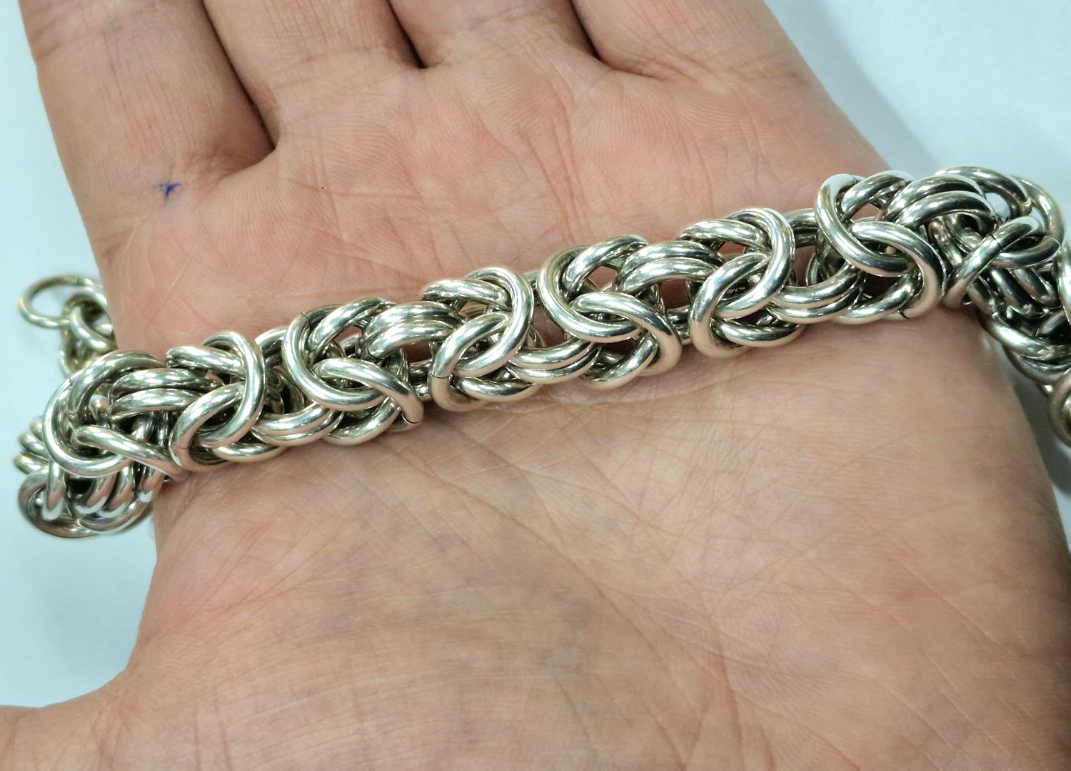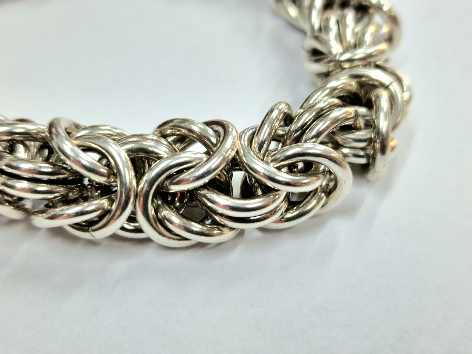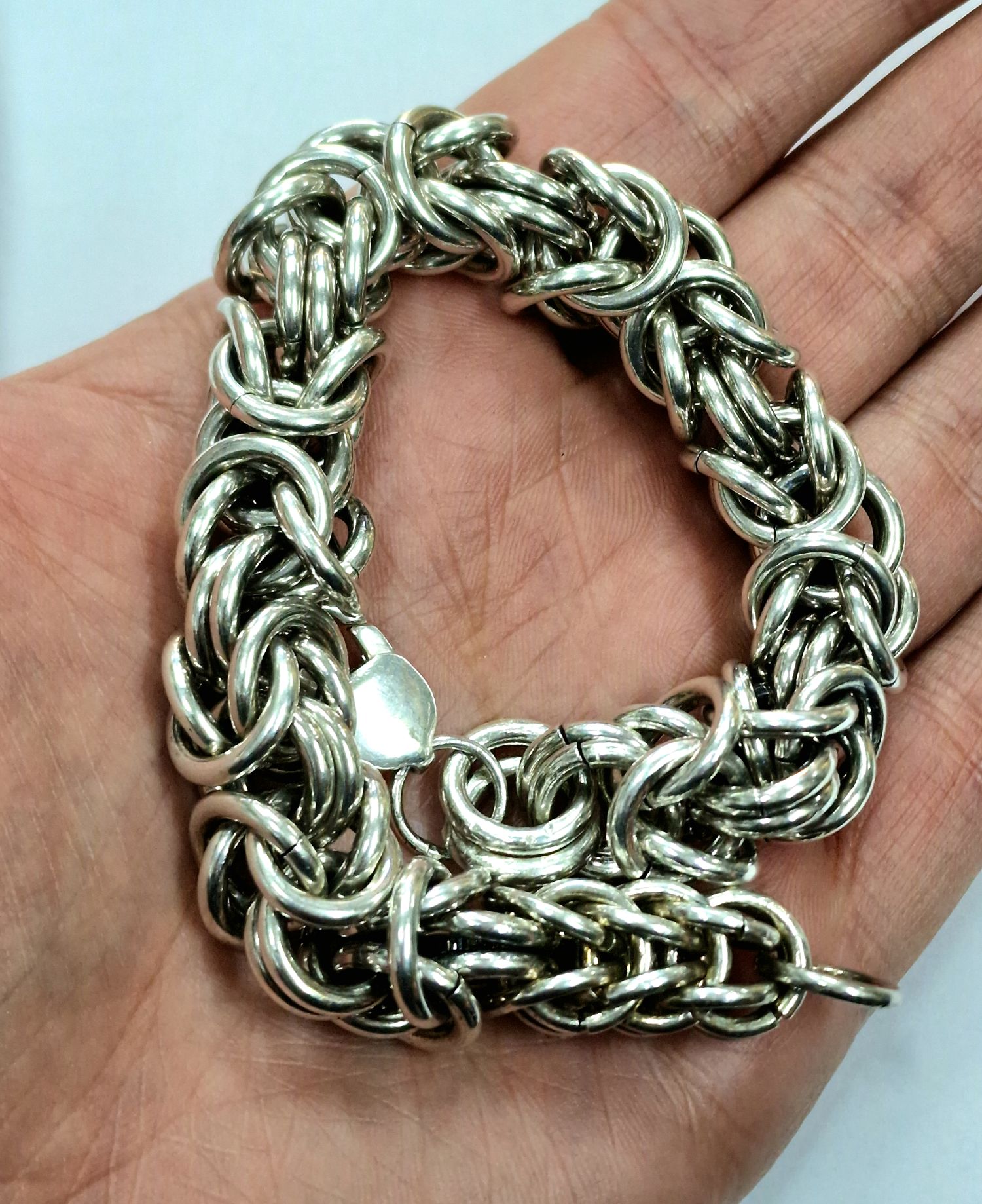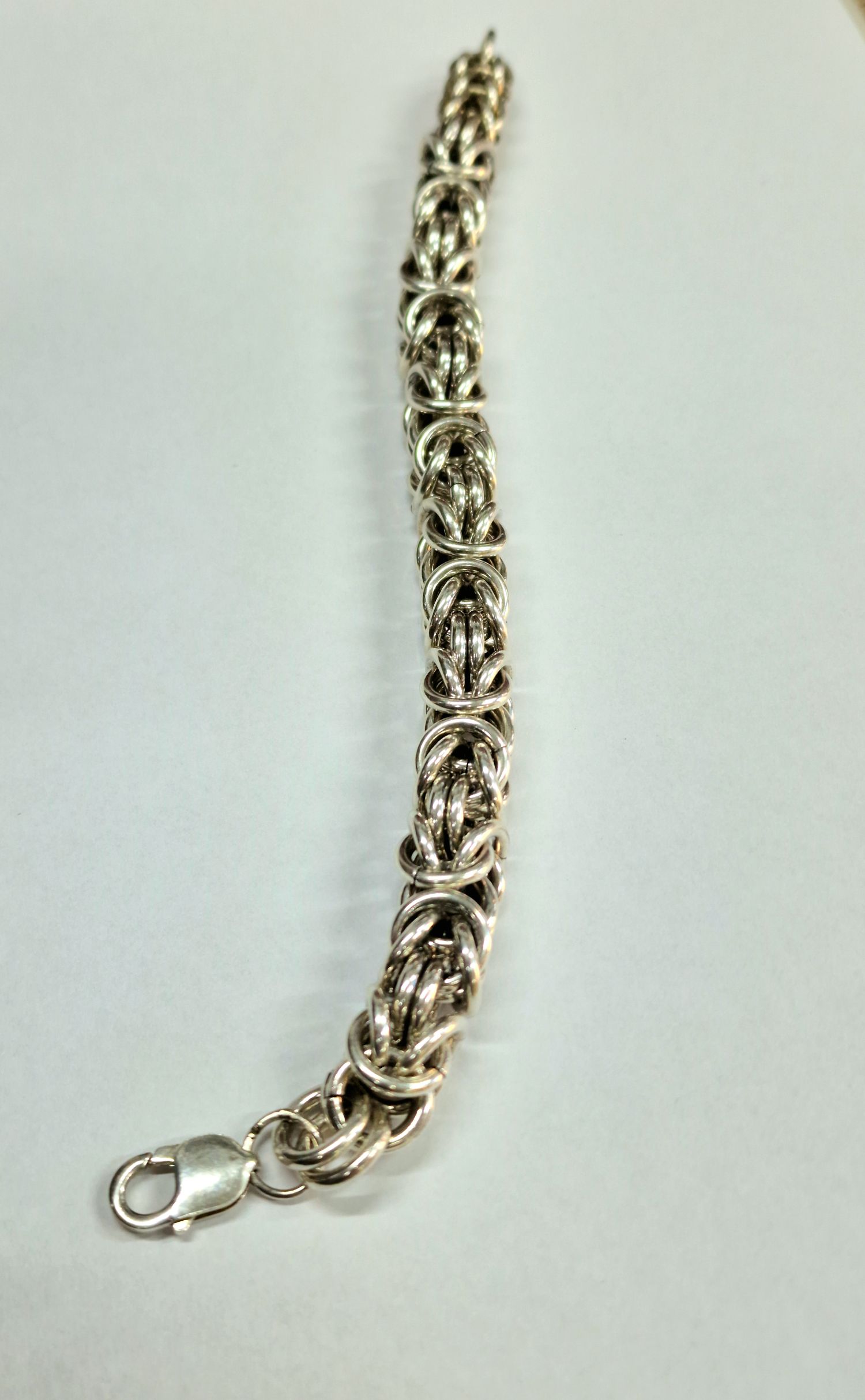 Na sprzedaż duża srebra bransoleta o splocie bizantyjskim