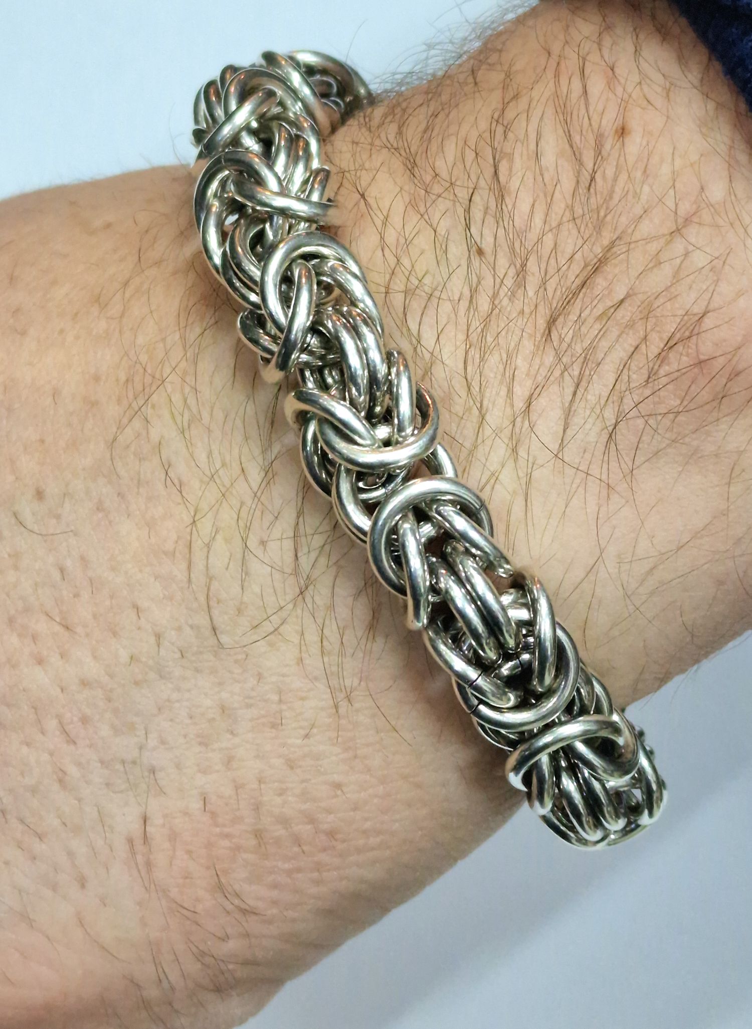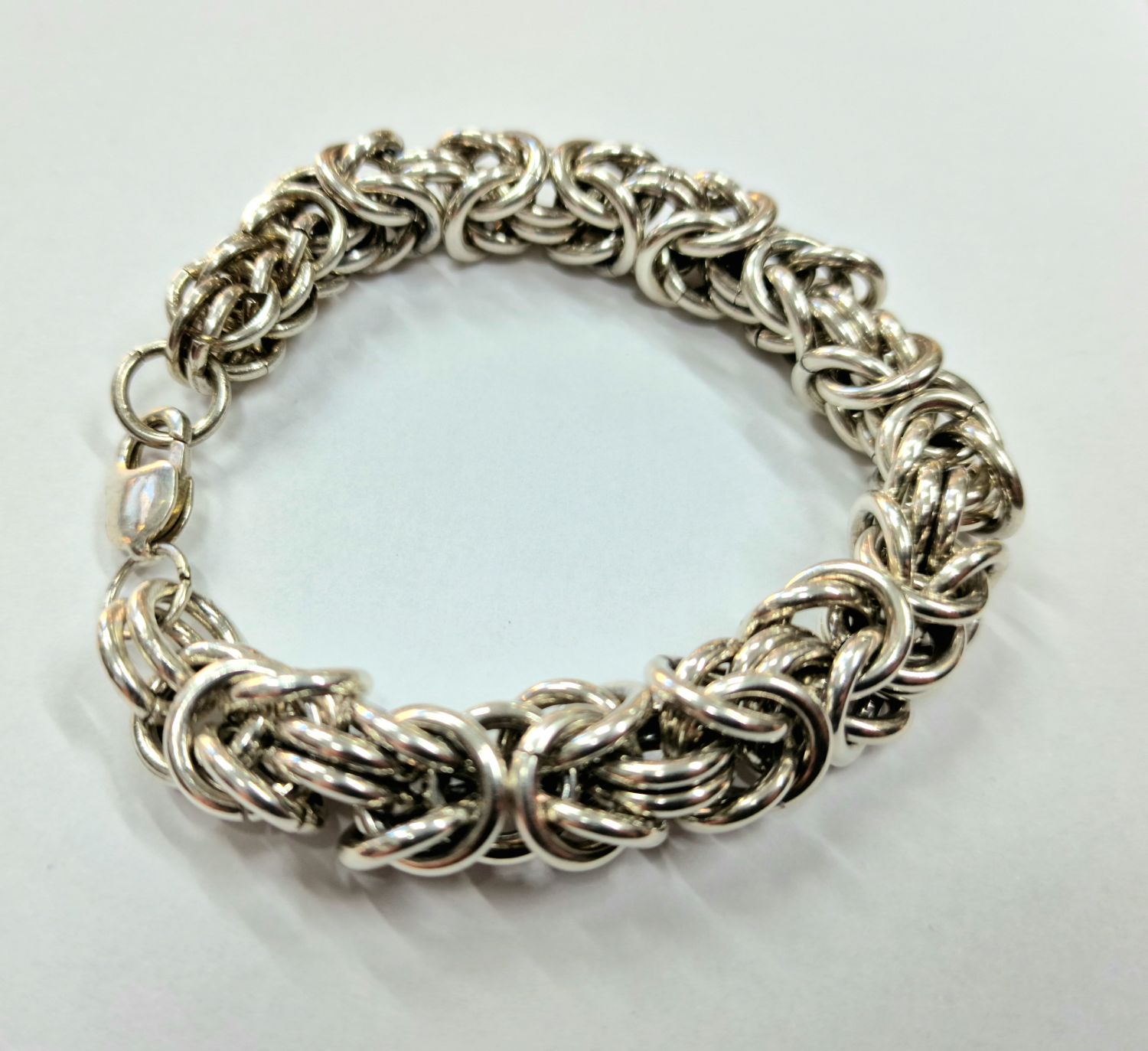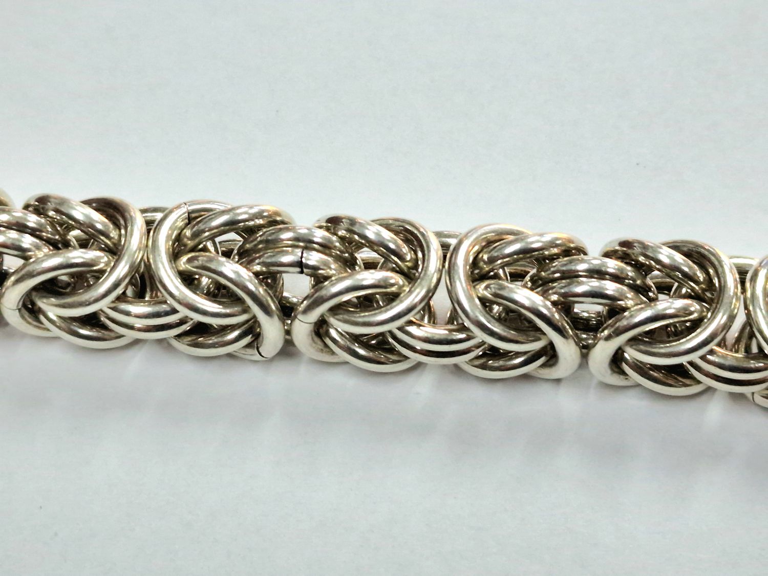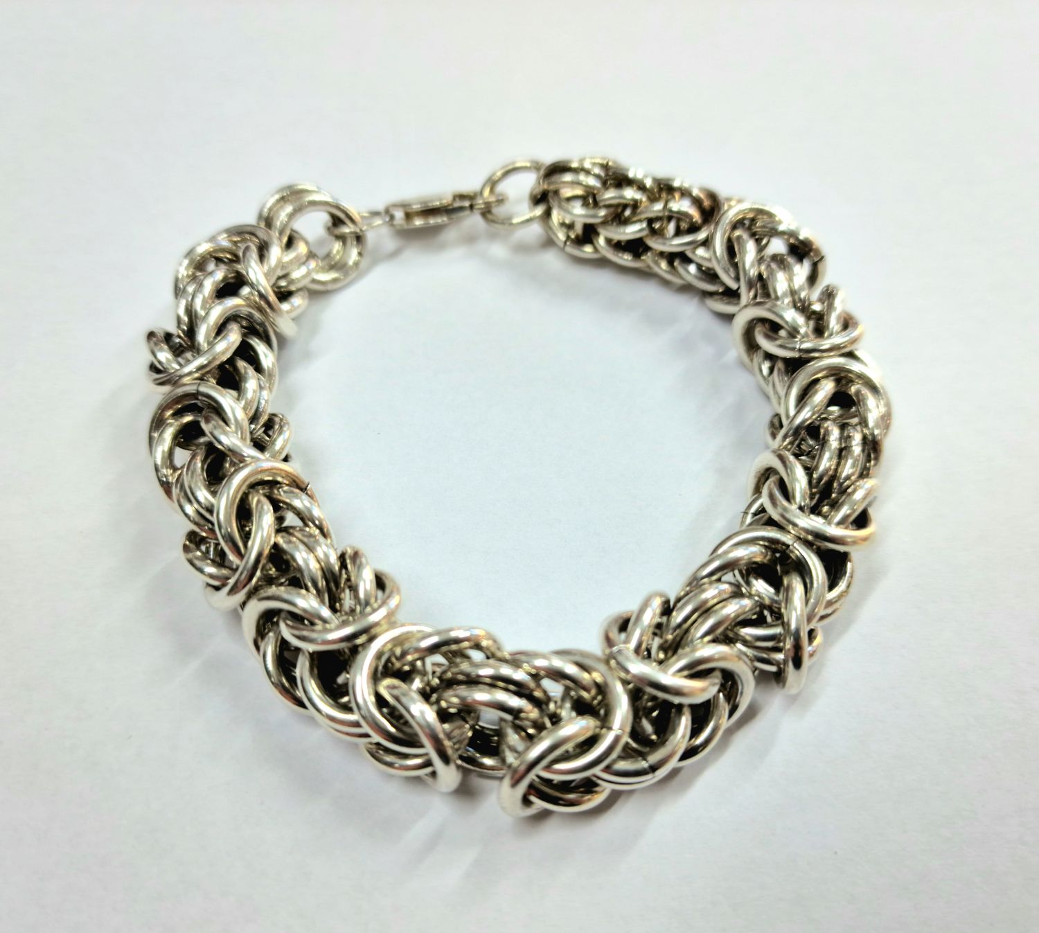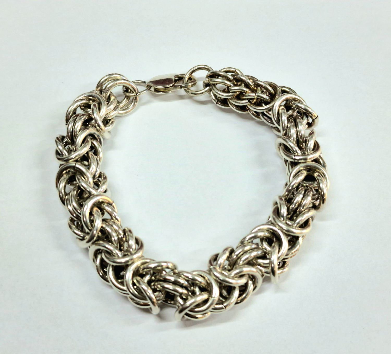 Na sprzedaż duża srebra bransoleta o splocie bizantyjskim
