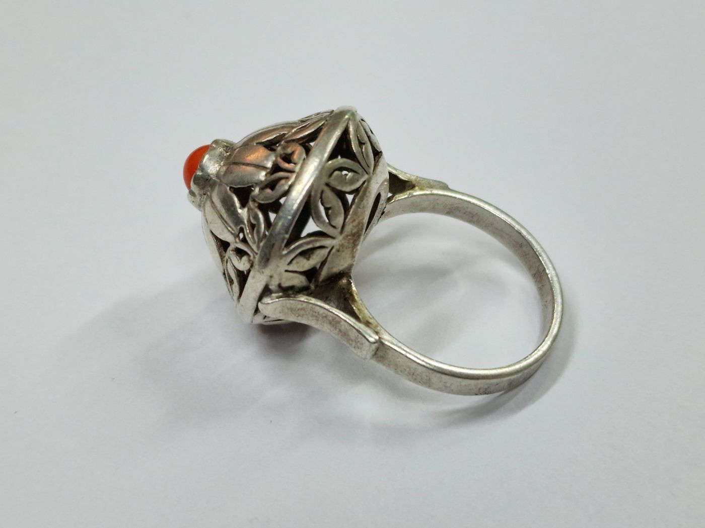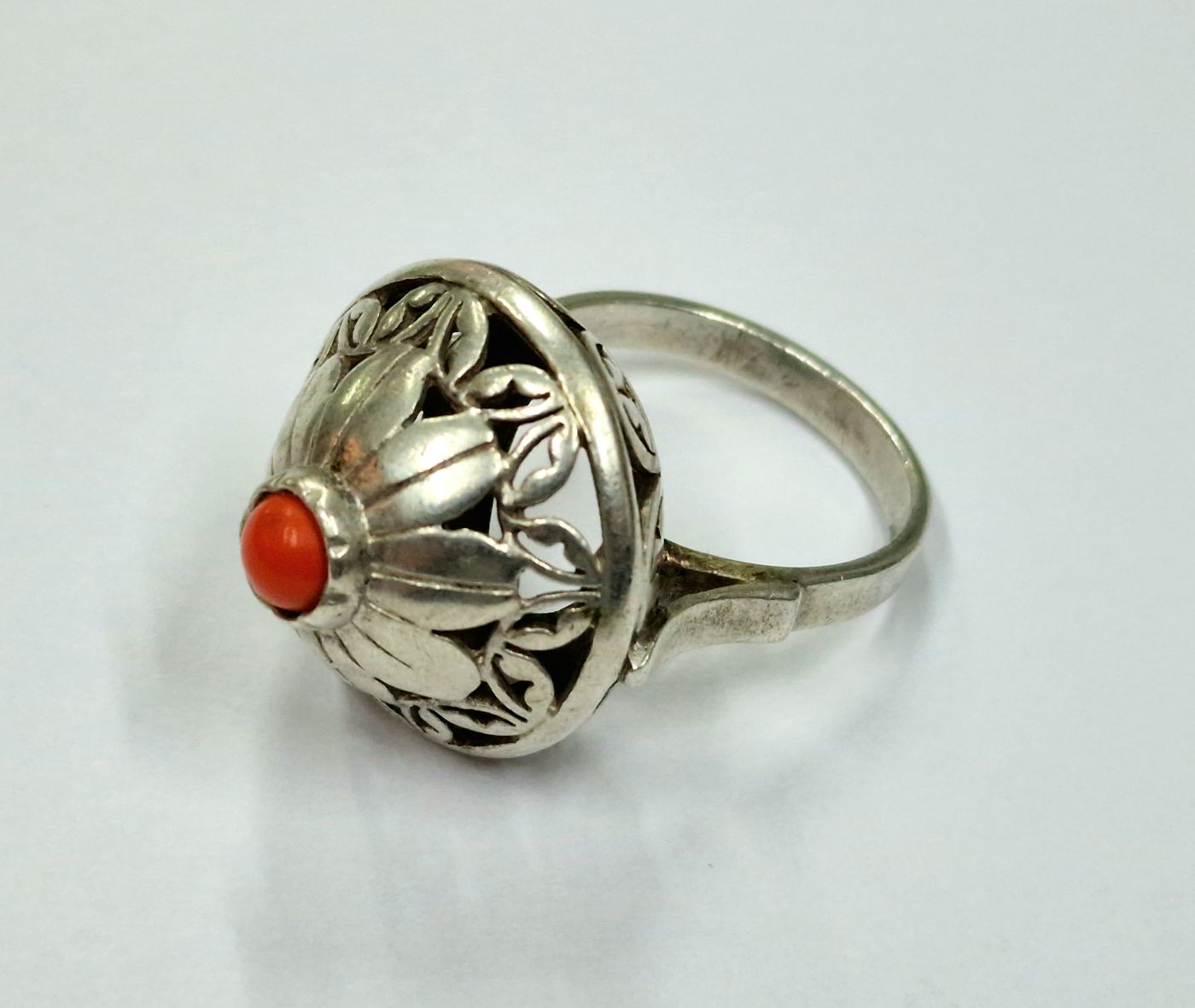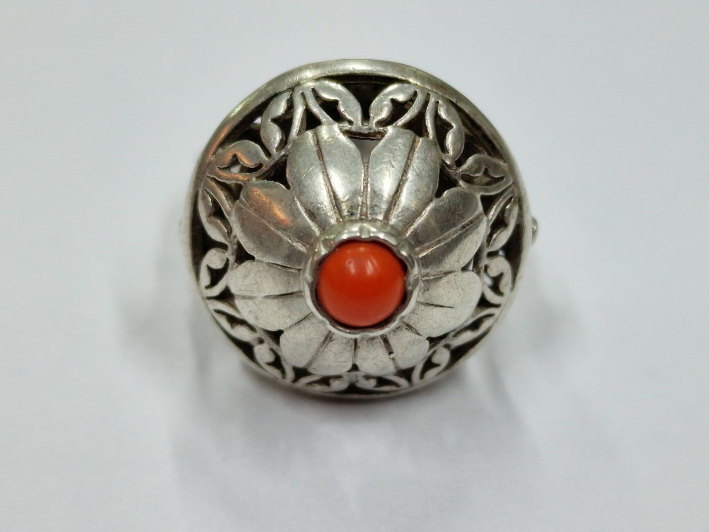 (PRZEDMIOT SPRZEDANY) Srebrny pierścionek Warmet z koralem wz SP-82